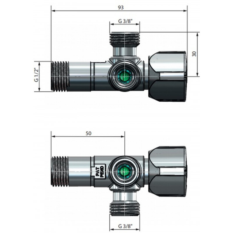 A80 TWIN MAC sarokszelep két kimenettel 1/2"x3/8"x3/8"