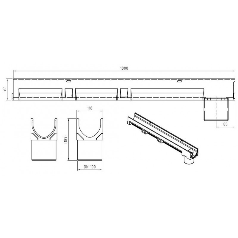 ACO SELF Euroline folyóka horg.acél ráccsal, csőcsonkkal 1 m, DN 110Jellemzők: