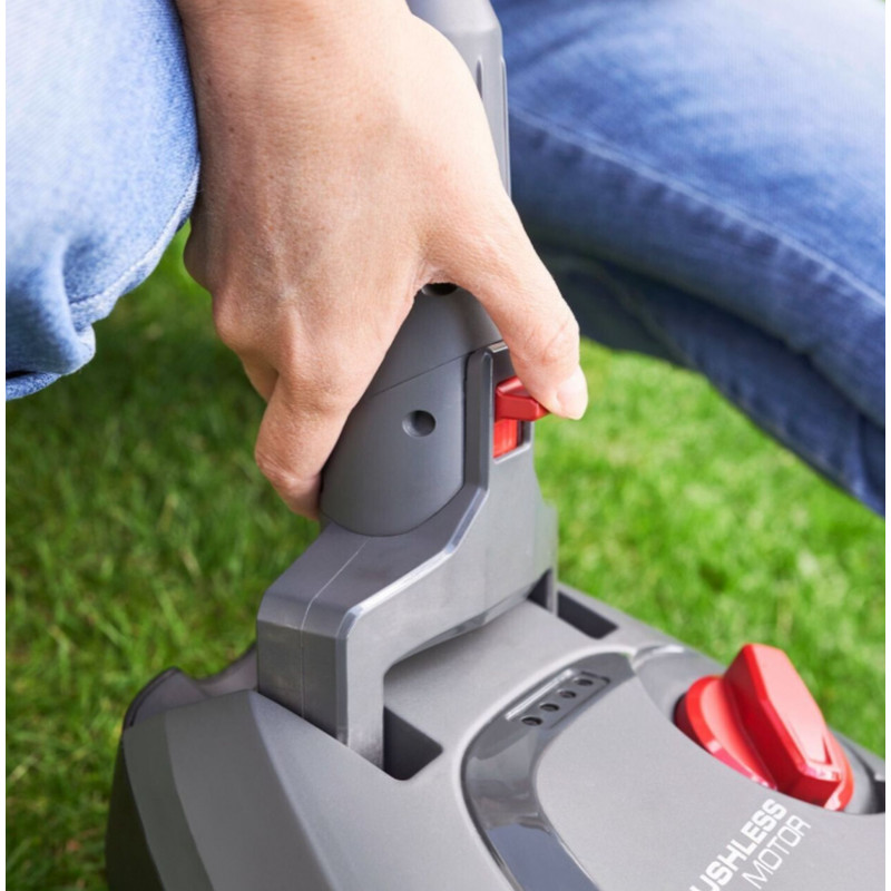 A mulcsozó funkcióval a levágott fű egyszerűen a gyepen marad, és így ökológiai műtrágyaként szolgál, ami megvédi a gyepet a forró hónapokban történő kiszáradástól is. A szénkefe nélküli motornak köszönhetően nagyobb teljesítmény és hosszabb fűnyírási idő érhető el. A vágási magasság 3 fokozatban állítható 30 és 50 mm között. Az egyenes nyíráshoz könnyen, szorosan rögzítheti a kezelőkart. Miután a fűnyírás befejeződött - ami ugyanolyan egyszerű a géppel, mint a porszívózás - a nyélbe épített furatnak köszönhetően helytakarékos módon akaszthatja fel a fűnyírót.