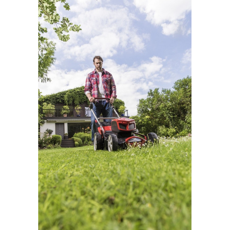 • Az innovatív alkatrészeknek köszönhetően mint a lítium-ion akkumulátor, továbbá a nagy vágószélességgel és a kerékhajtással az AL-KO 46.9 Li SP az Ön kertjének károsanyag kibocsátás mentes partnere.