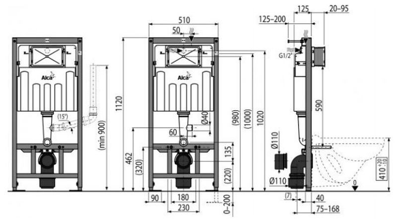 ALCAPLAST falsík alatti WC tartály szellőző előkészítéssel száraz szereléshez AM101/1120V