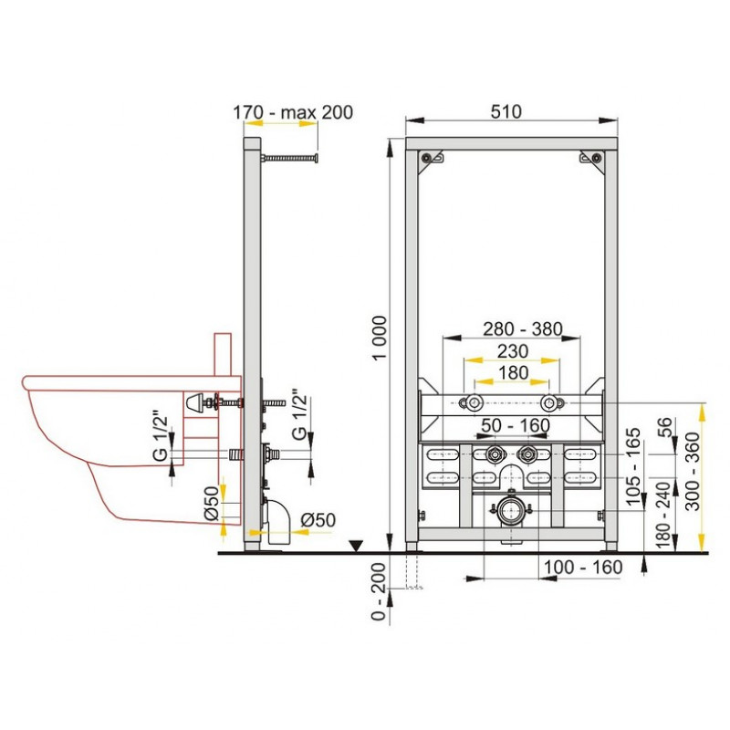 ALCAPLAST szerelőkeret bidéhez, szerelési magasság 1 m A105/1000
