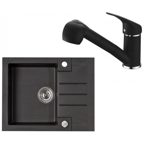 ALVEUS ROCK 30 gránit mosogató szett 595x475 mm + AM 20 csaptelep, fekete
