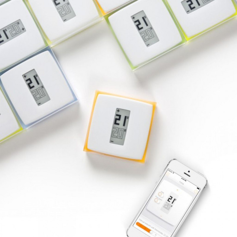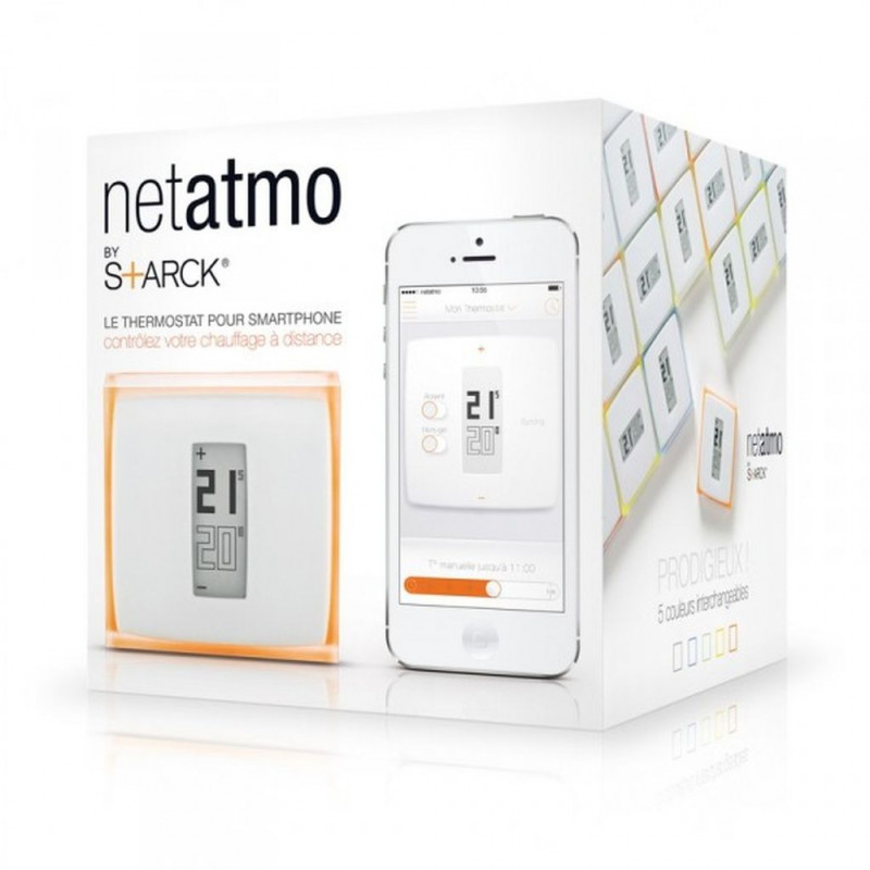 A Netatmo termosztátot Philippe Starck tervezte, aki esztétikus és elegáns megjelenést kölcsönzött neki. Az 5 cserélhető színes fóliával a termosztát hátoldalán egy pillanat alatt megváltoztatható a megjelenés. A termosztát finom, lágy és eredeti benyomást kelt. Az E-INK kijelzőn a kiváló minőségnek és minimális energiafogyasztásnak köszönhetően minden szükséges információ tisztán látható.