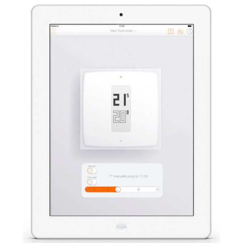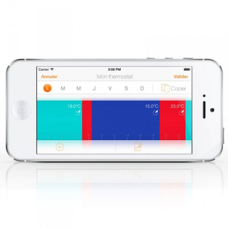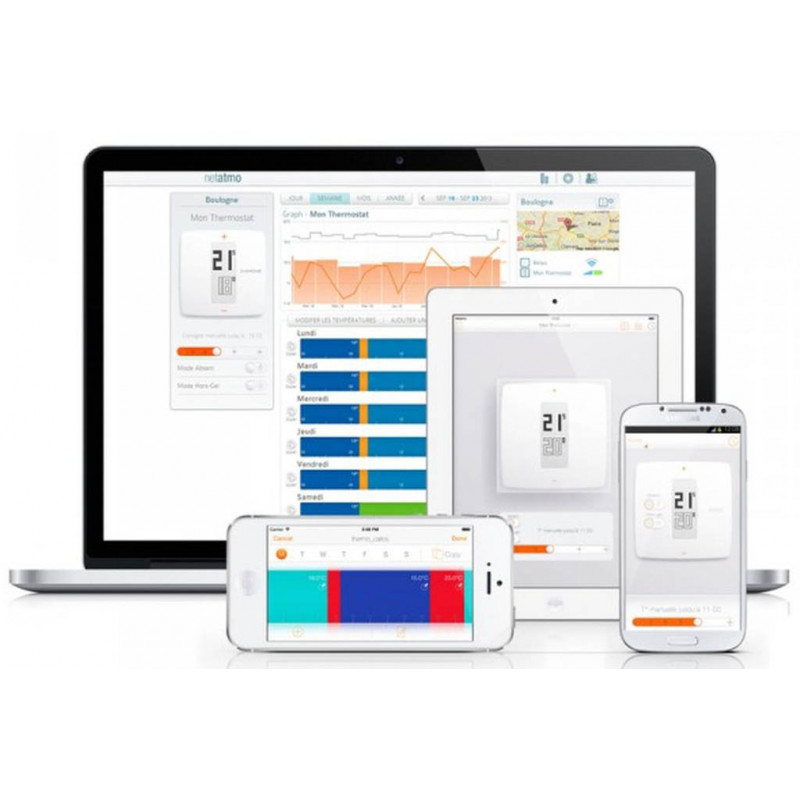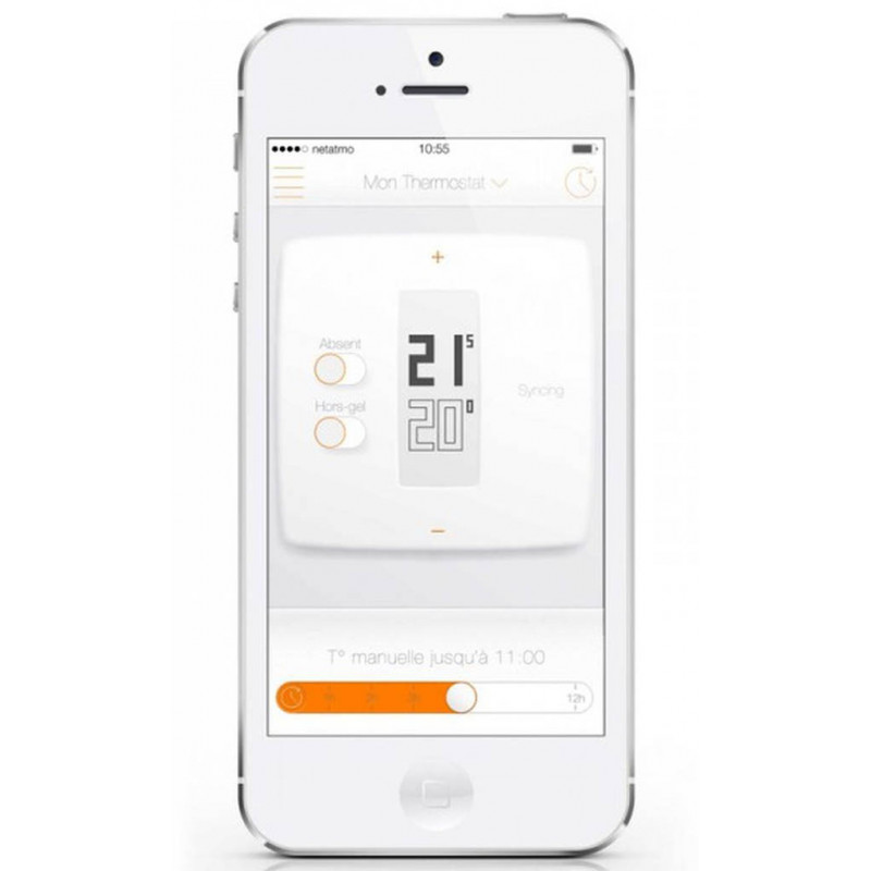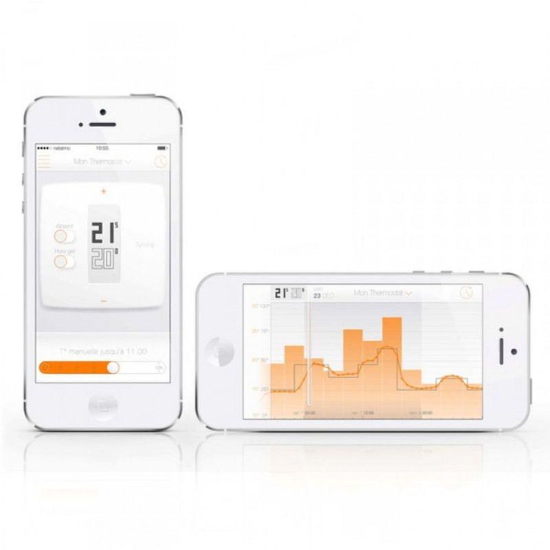 Az ingyenes „Thermostat by Netatmo” alkalmazásnak köszönhetően távolról is beállíthatja a hőmérsékletet, még akkor is, ha a világ másik végén tartózkodik! A Wi-Fi kapcsolat használatával a termosztát szinkronizálódik az alkalmazással, és folyamatosan továbbítja a legfrissebb adatokat. Naviga, az interfész egyszerű, intuitív és hatékony.