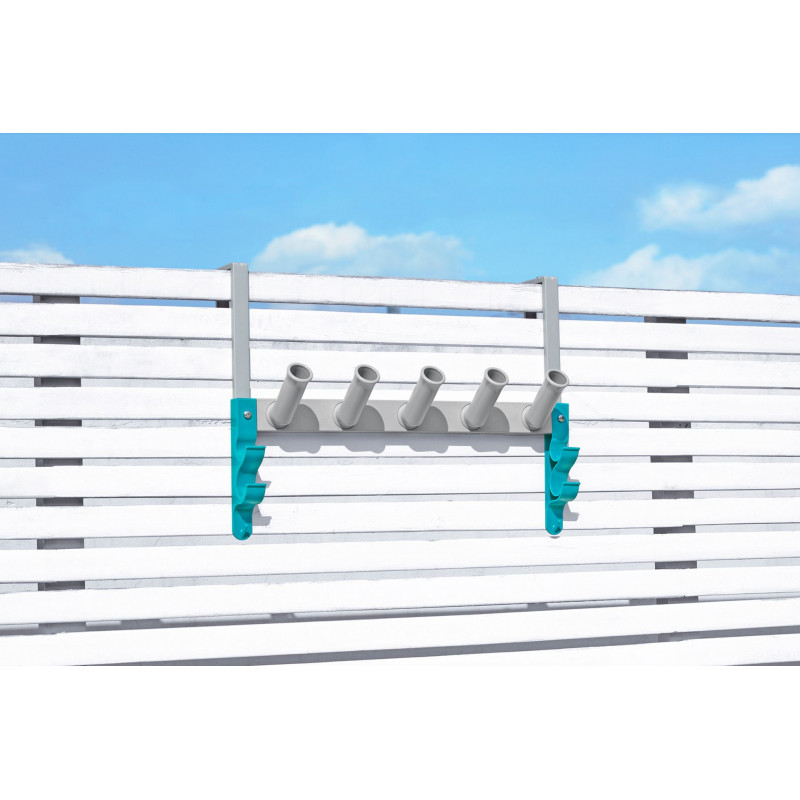 • Akár két nyelet és 5 szkimmert, kefét, hálót vagy pórszívót tárolhat a 3cm-es átmérőjű tartókon