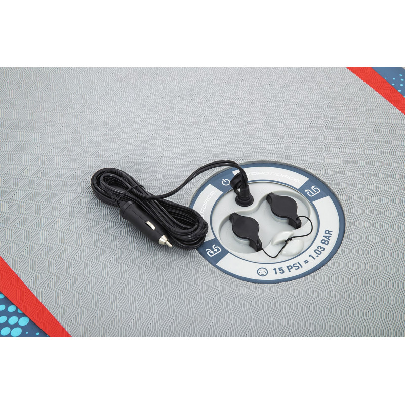 Az ellenálló FortiFiber™ drop stitch (varrásmentes) szerkezet több ezer belső szálból áll, amelyek a paddleboard felső és alsó rétegét kötik össze. Ennek eredménye a merev, masszív felépítés, amely egy kemény deszkához hasonló stabilitást nyújt, miközben megőrzi az alacsony súlyt és a könnyű tárolhatóságot. A CompactAir™ önfelfújó rendszer beépített pumpával lehetővé teszi, hogy csupán a tápkábel csatlakoztatása után rövid időn belül vízre szállhasson.