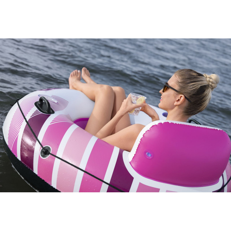 BESTWAY Hydro-Force Rapid Rider felfújható fotel háttámlával O 122 × 48,5 cm maximális pihenést és szórakozást kínál a vízen. Legyen szó medencéről, tóról vagy nyugodt vízfelületről, ez az élénk rózsaszín fotel kényelmes háttámlát, hűsítő hálós aljat és komfortos ülést biztosít. Csak dőljön hátra, lógassa a lábát a vízbe, és élvezze a nyarat teljes mértékben.
