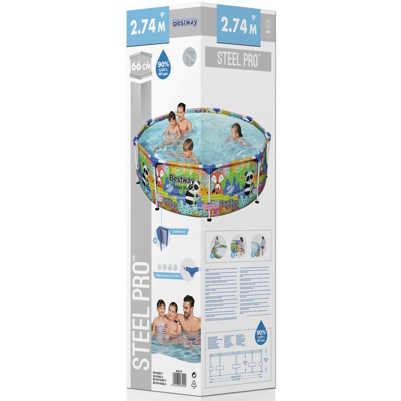 - Um nach Deutschland zu versenden, besuchen Sie BESTWAY Steel Pro Frame Pool ohne Pumpe, 274 x 66 cm, buntes Panda- und Fuchs-Design 5612F