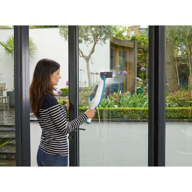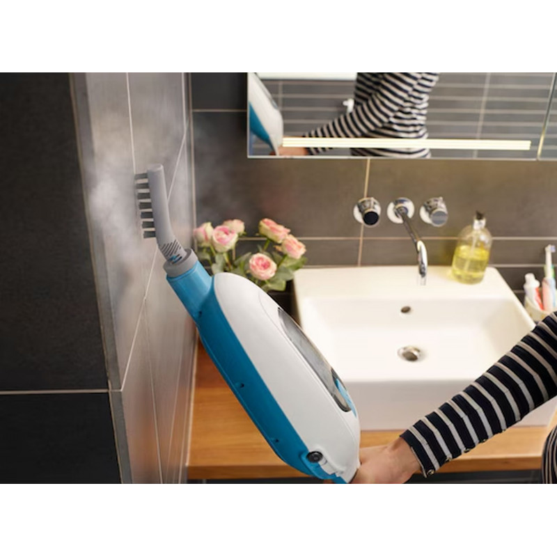 A gőzfelmosó mindössze 25 másodperc alatt üzemkész, a 180°-ban forgatható fej pedig megkönnyíti a bútorok körüli és sarkokban történő tisztítást. Az ergonomikus kialakítás és az alacsony, 1,8 kg-os súly kényelmes, akár egykezes használatot biztosít. A 4,8 m hosszú kábel megfelelő mozgásszabadságot nyújt. A mikro szálas tisztítópárna akár 100× mosható 60 °C-on.