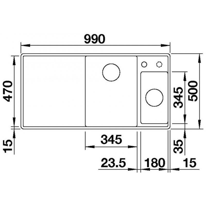 • Mosogatótálca mérete: 345 x 470 x 190 mm, 180 x 345 x 145 mm
