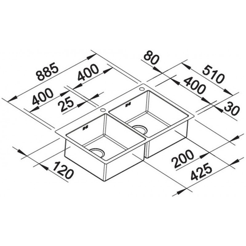 • Mosogatótálca mérete: 400 x 400 x 190 mm, 400 x 400 x 190 mm