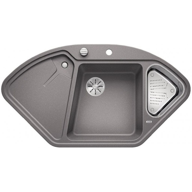 BLANCO DELTA II szilgránit mosogató dugókiemelővel, gyümölcsmosóval, alumetál 523658