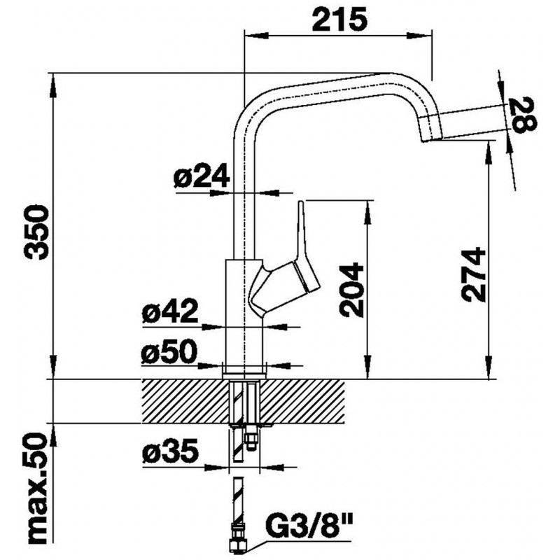 • A csaptelep beépítéséhez 35 mm átmérőjű furat szükséges