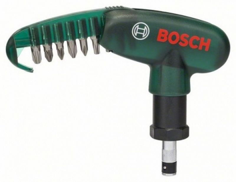 BOSCH 10-részes csavarozófej-készlet "Pocket" 2607019510- Tartalom: 9 csavarozóbit, H = 25 mm PH 1/2 PZ 1/2/3 HEX 4/5 T 20/25 1 db kézi csavarhúzó, racsnis az óra járásával egyező irány/az óra járásával ellentétes irány