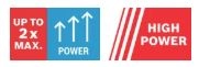 - Nagy teljesítmény: akár 2000 W maximális teljesítmény a nagyobb igénybe vételt jelentő alkalmazásokhoz (belső laboratóriumi tesztadatok, pillanatnyi maximális teljesítmény, teljesen feltöltött, új akkumulátorral)