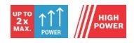 - Nagy teljesítmény: akár 2000 W maximális teljesítmény a nagyobb igénybe vételt jelentő alkalmazásokhoz (belső laboratóriumi tesztadatok, pillanatnyi maximális teljesítmény, teljesen feltöltött, új akkumulátorral)