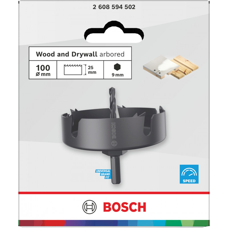BOSCH Fa és gipszkarton körkivágó befogótüskével, 100 x 27 mm 2608594502