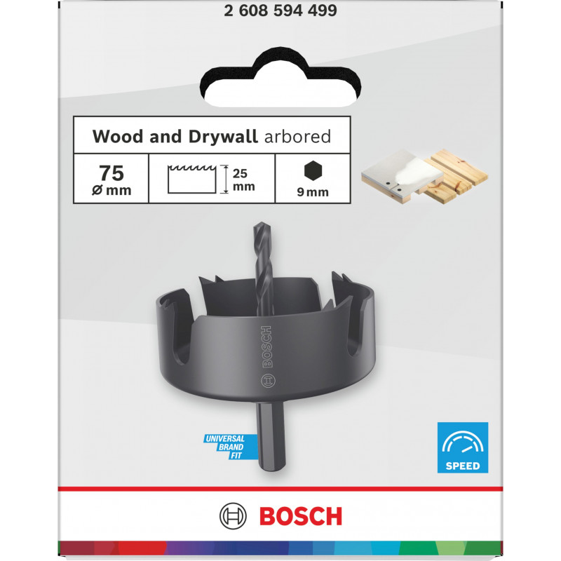 BOSCH Fa és gipszkarton körkivágó befogótüskével, 75 x 27 mm 2608594499