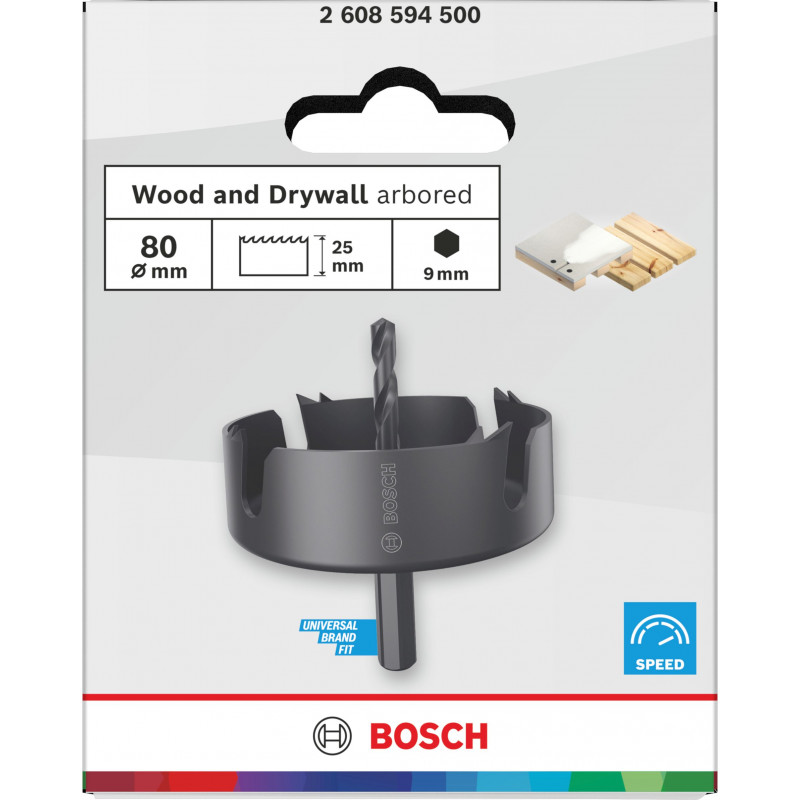 BOSCH Fa és gipszkarton körkivágó befogótüskével, 80 x 27 mm 2608594500