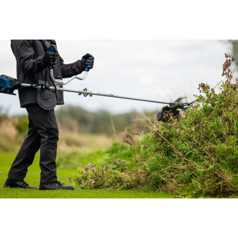 A PRO GFR 18V-25 akkus fűkasza erős, 600 W-os szénkefe nélküli motorral rendelkezik, amely kevesebb, mint egy másodperc alatt eléri az 5300 ford./perc maximális fordulatszámot. Jól kiegyensúlyozott kialakítása kerékpárfogantyúval rendelkezik, amely nagyobb kényelmet biztosít, a munkavégzés pedig kevesebb fáradsággal jár – a fogantyú szöge szerszám nélkül állítható. A jelenlét-érzékelő funkció biztosítja, hogy a szerszám ne zárjon le a vágási műveletek között, így nem kell újra feloldani. Az elektronikus fordulatszám-szabályozás változó körülmények között is automatikusan állandó értéken tartja a sebességet. A változtatható fordulatszámú kapcsolóval a motor fordulatszáma az aktuális munkakörülményekhez igazítható, optimalizálva a működési időt és csökkentve a zajszintet. A Bosch Anti-Tangle funkció egyenletesebb nyírási folyamatot nyújt, mivel megakadályozza a hosszú fű vagy gyom tengely köré csavarodása miatti elakadást. Nagy vágási átmérője – 25 cm a pengés, 40 cm zsinóros vágáshoz – segít a nagy munkák erőfeszítés nélküli elvégzésében. A fűkaszálás és a fűnyírás közötti váltás egyszerű a könnyen cserélhető késnek és orsónak köszönhetően. A robusztus Pro-Tap orsó biztosítja a vágás megszakítás nélküli végzését. Az EasyWind segítségével az új zsinór gyorsan betölthető anélkül, hogy ki kellene nyitni az orsót. Alacsony zajszintjének köszönhetően a fűkasza alkalmas lakóövezetekben és más zajérzékeny területeken végzett munkákra is.