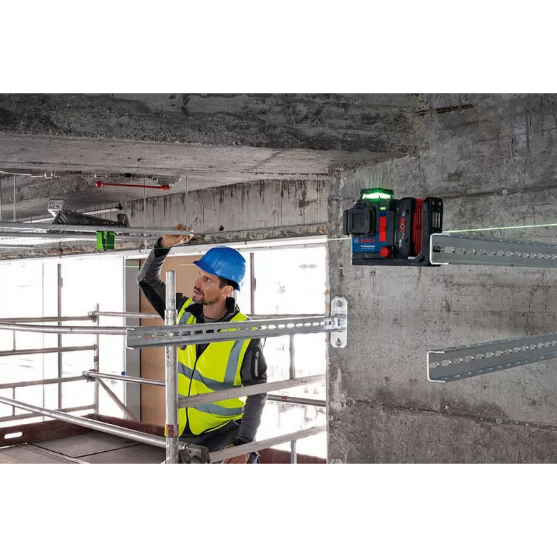A GLL 18V-120-33 CG Professional az építőipari szakemberek számára megbízható precizitást biztosít a legkeményebb munkakörülmények között is. A háromféle áramforrás elve lehetővé teszi a váltást a 18 V-os és 12 V-os platform között, valamint alkáli C-cellák is használhatók az állásidők elkerülése érdekében, hogy a feladatra lehessen koncentrálni. Ez a robusztus vonallézer gumírozott burkolattal és IP65 védettséggel rendelkezik, így munkavégzés közben nem kell aggódni a víz, por és ütések miatt. A könnyebb munkavégzéshez a lézeren háttérvilágítású billentyűzet található a lézervonalak egyenkénti kiválasztásához, a beépített, erős mágnessel rendelkező talppal pedig gyorsan és biztonságosan rögzíthető. A lézervonal finombeállítással a függőleges vonal a referenciapont elvesztése nélkül módosítható.