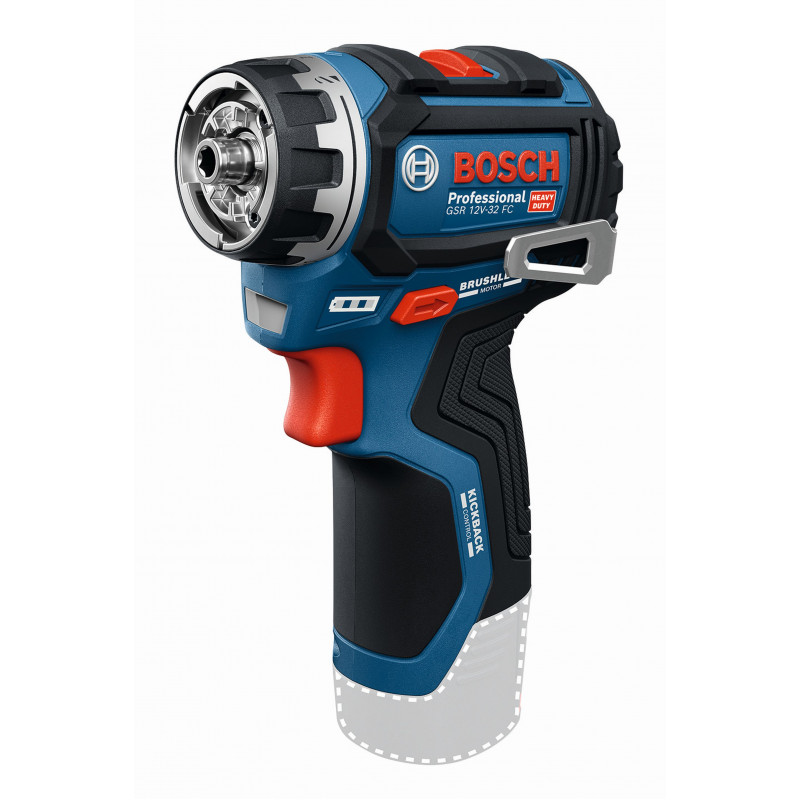További információk: a PRO GSR12V-32 FC továbbfejlesztett KickBack Control funkcióval, szénkefe nélküli motorral, erős munkalámpával, valamint övcsipesszel rendelkezik.