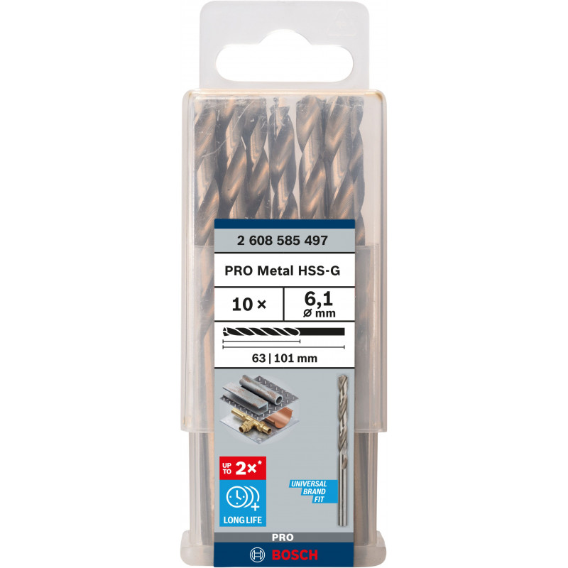 BOSCH PRO Metal HSS-G csigafúrószár, standard hosszúságú, 6,1 x 63 x 101 mm 2608585497