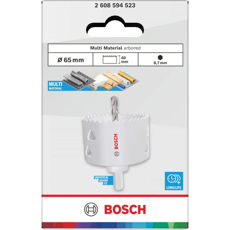 BOSCH Multi Material körkivágó befogótüskével, 65 x 40 mm 2608594523