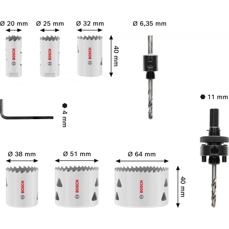 BOSCH Multi Material menetes körkivágó-készlet, 20; 25; 32; 38; 51; 64 × 40 mm 2608594613