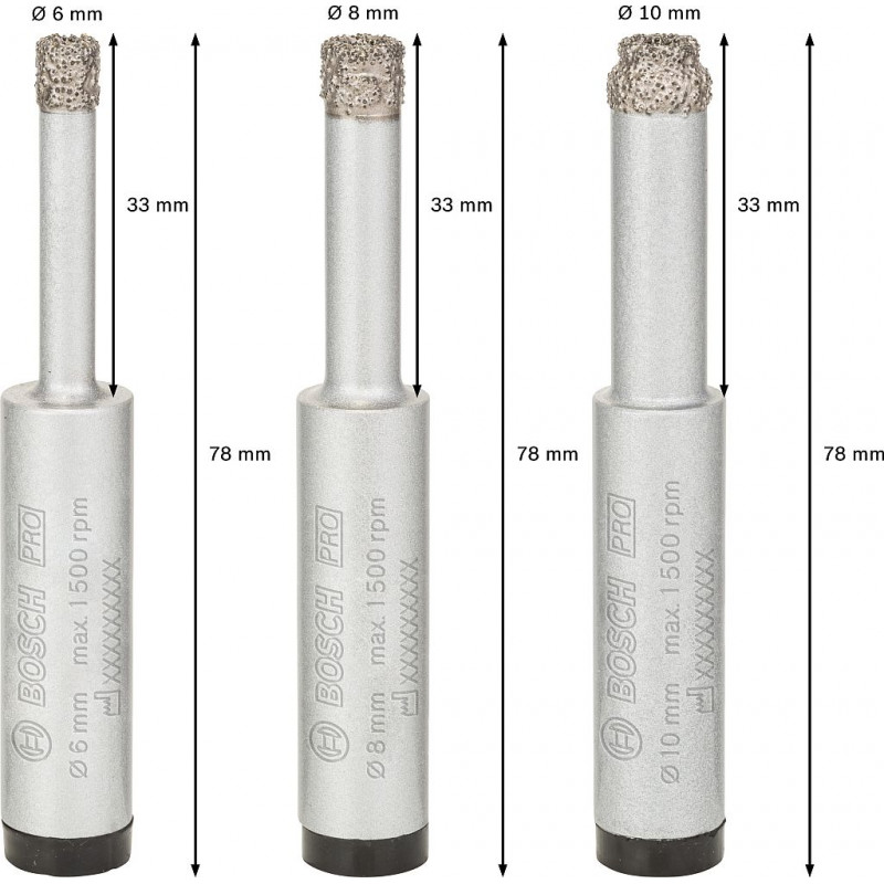 - Pro odeslání do Česka navštivte BOSCH Sada vrtáků PRO Ceramic dry pro vrtání za sucha, 6 × 33, 8 × 33, 10 × 33 mm, 3 kusy 2608587145