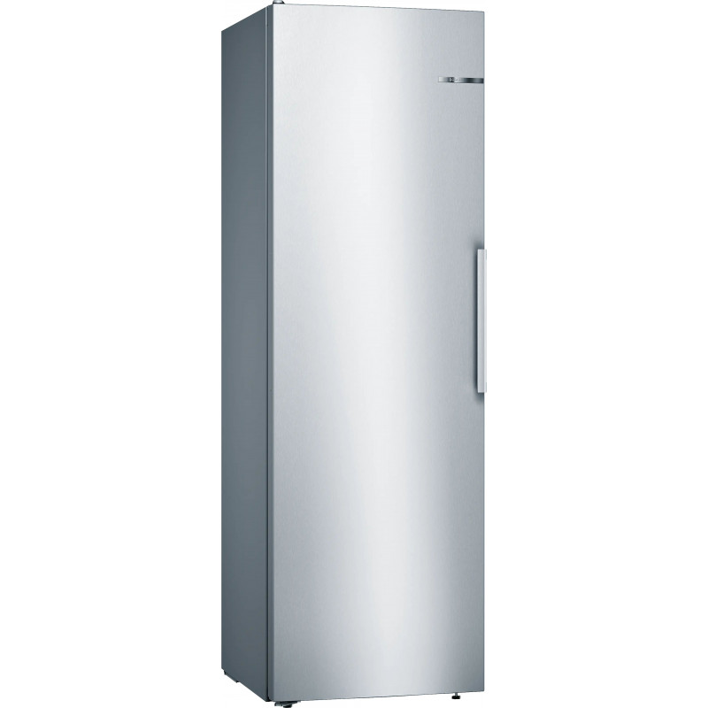 Bosch Serie 4 – Szabadonálló hűtőkészülék fagyasztórekesz nélkül 186 x 60 cm, 346 l, Szálcsiszolt acél színű KSV36VLEP