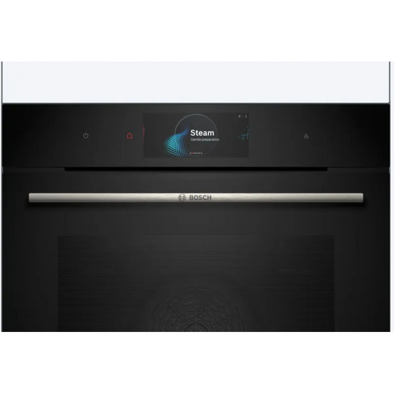 Beépíthető sütő AddedSteam hozzáadott gőz funkcióval, digitális kezelőgyűrűvel és TFT-TouchDisplay Pro érintőkijelzővel, PerfectRoast Plus & PerfectBake Plus szenzorokkal és Home Connect funkcióval.
