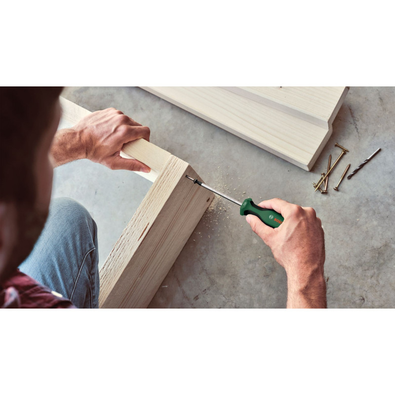 Bármilyen rögzítési feladat elvégzése gyorsan és hatékonyan a Bosch kiváló minőségű csavarhúzójával – kiváló teljesítményre és rendkívüli kényelemre tervezve. A csavarhúzó rendkívül kemény, S2 acélból készült, krómozott felületű szára kiváló, a TMD-705 szabványban előírthoz képest legalább 40%-kal nagyobb nyomatékot biztosít. A stabil csavarbehajtás és a nagyobb kontraszt érdekében a robusztus csavarhúzó hegye mágneses (58 ± 3 HRC), és fekete foszfátbevonattal színezett. A két alapanyagból készült nyél puha markolattal rendelkezik a hatékonyabb és kényelmesebb használat érdekében. A fogantyú elülső felülete hatszögletű, ami megakadályozza a szerszám elgurulását. Melyik Bosch csavarhúzót válasszam a különféle feladatokhoz? A választás egyszerű és gyors a színkódolt méret- és típusjelzéseknek köszönhetően.