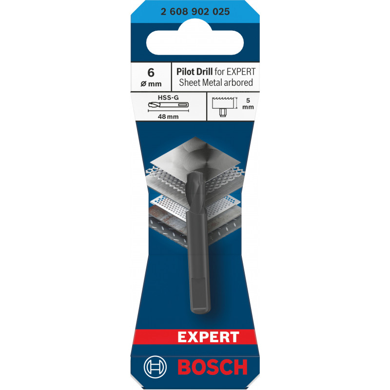 BOSCH Vezetőfúró EXPERT Sheet Metal befogótüskés körkivágóhoz, O6 x 5 x 48 mm 2608902025