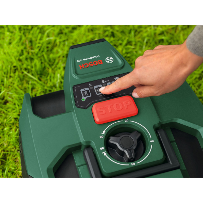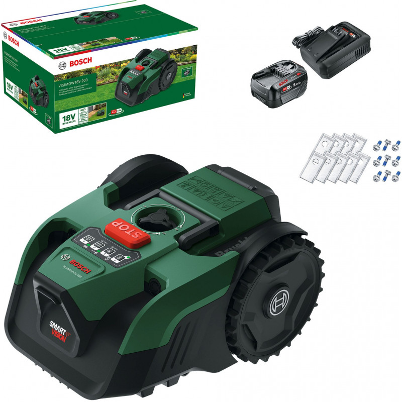 A BOSCH VISIMOW 18V-200 robotfűnyíró ideális választás akár 200 m2-es gyepfelületek automatikus karbantartásához. A SmartVision intelligens rendszernek köszönhetően nincs szükség határoló vezetékre vagy külön infrastruktúrára. A készülék három gombnyomással, néhány másodperc alatt üzemkész.
