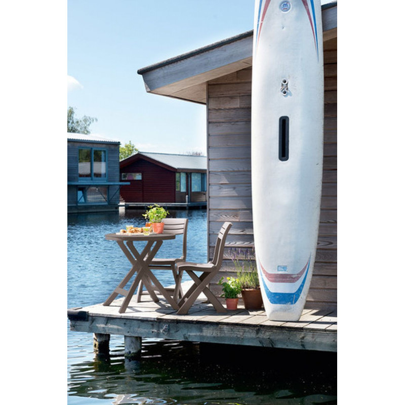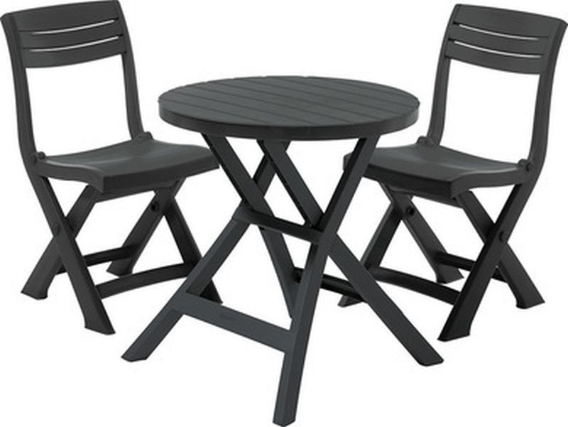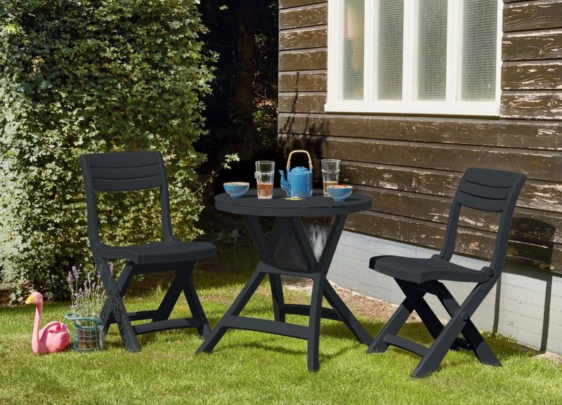 TACOMA & OREGON BALCONY SET Olasz kávézók hangulatára emlékeztető kompakt, összecsukható erkély garnitúra. A két modern formatervezésű szék és a természetes faanyagot imitáló kerek dohányzóasztal kényelmes pihenést garantál. A garnitúra azoknak ajánlott, akik kis területen szeretnének kialakítani egy pihenősarkot a friss levegőn történő étkezés lehetőségével. A termékek tartósak és ellenállnak az időjárás viszontagságainak és az UV sugárzásnak.- Cikkszám: 17204593