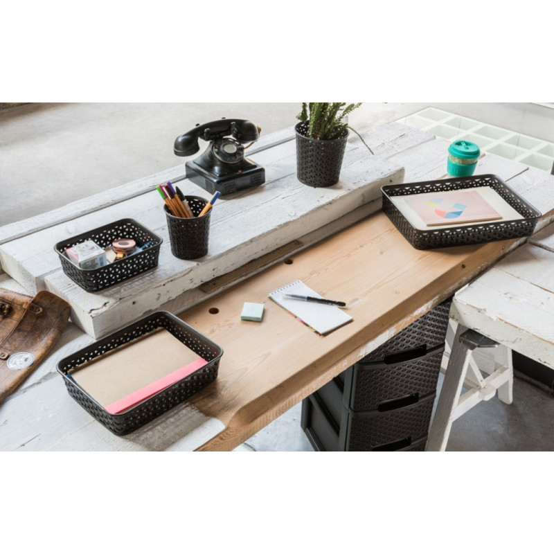 CURVER MY STYLE A6 méretű kosár 1,25L, sötétbarna 203415 (00097-210)A "My Style" vonalunkkal az elegáns tárolás ötletét szem előtt tartva készítettük el ezen tároló kosarakat. Lakberendezési kiegészítők tárolásához ajánljuk. Remek alternatívát nyűjt a fonott rattan kosarak helyett. Kiegészíti a belső tereket minden helyiségben (fürdőtől a nappaliig). Textíliák tárolására is alkalmas, szemben a fonott rattan kosarakkal. A termékcsalád további tagjaihoz tökéletesen illeszkedik.