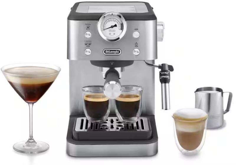 De'Longhi EM450.M egy elegáns karos kávéfőző, amely az olasz dizájnt, az egyszerű használatot és a nagy teljesítményt ötvözi a mindennapi kávékészítéshez. Ha olyan eszpresszó kávéfőzőt keresel, amellyel intenzív eszpresszót, lágy lungót vagy krémes cappuccinót készíthetsz, ez a modell ideális választás. A 15 bar nyomás és a Thermoblock technológia gyors felfűtést és stabil hőmérsékletet biztosít, ami elengedhetetlen a tökéletes extrakcióhoz és a gazdag ízhez.