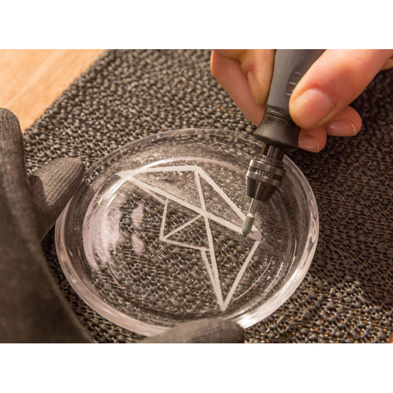 - A minőségi tartozékkészlet az üvegen végzett kreatív barkácsfeladatokhoz elengedhetetlen tartozékokat tartalmazza. Készítsen saját karácsonyi díszeket, dekoratív üveg poháralátéteket, vagy tegye egyedivé gravírozással az elajándékozni kívánt borospalackokat. A szerszámkészlettel bármilyen üveg- és fémfelületen végezhet maratási és gravírozási műveletet.