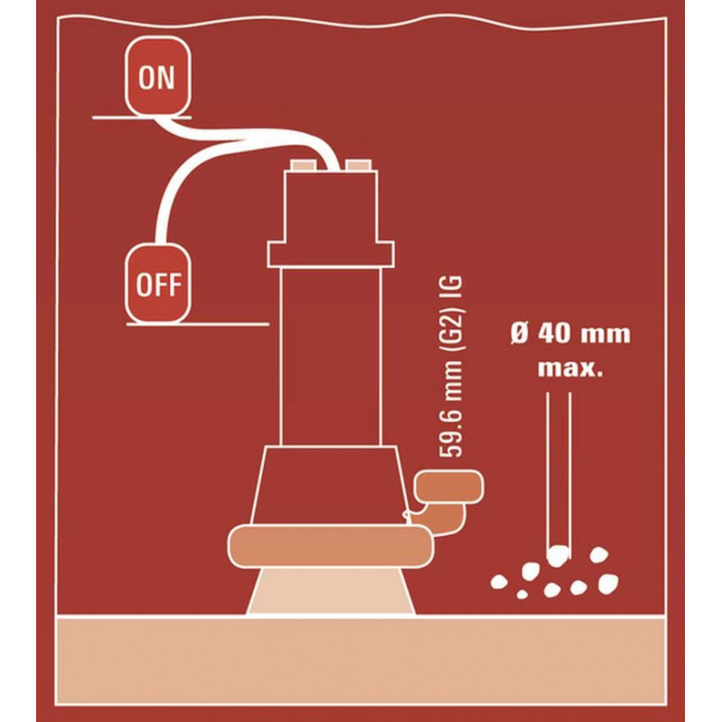 Az úszókapcsoló beállításával megadhatja a be- és kikapcsolási szintet, a kapcsolót rögzítve pedig folyamatosan üzemeltetheti a szivattyút. A 2“ tömlőkhöz (kb. 50,8 mm) G2 csatlakozót mellékeltük. A szivattyú kényelmesen szállítható a praktikus fogantyúnál fogva.