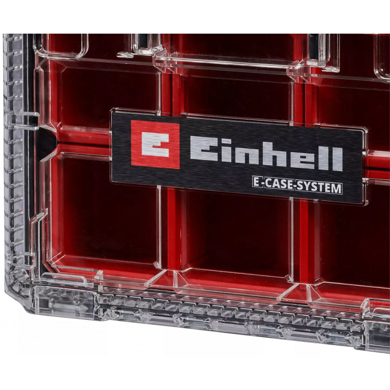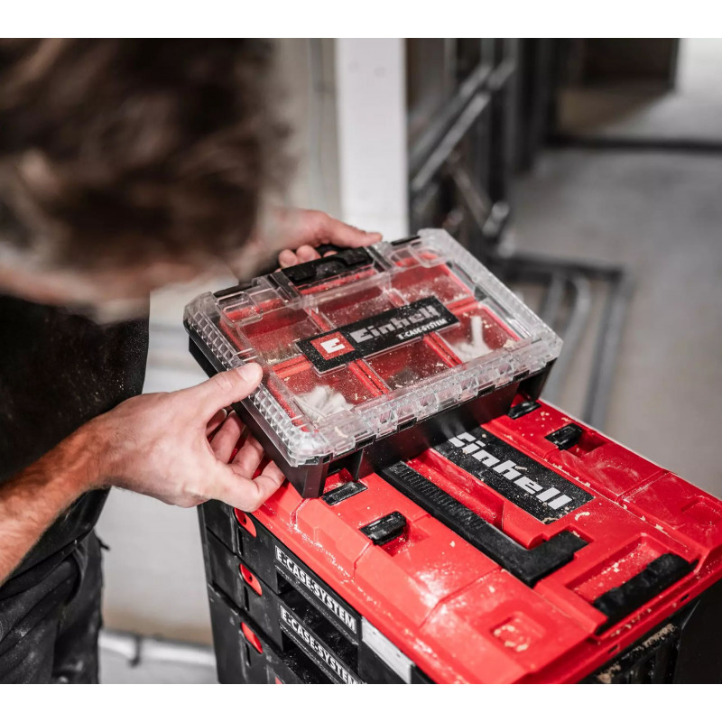 Az Einhell E-Case Half-size rendszerező doboz az E-Case moduláris tárolórendszer része, és csavarok, tiplik valamint egyéb apró alkatrészek áttekinthető tárolására szolgál. Az organizer kompatibilis minden Half-size zárral ellátott Einhell E-Case kofferrel, valamint minden Half-size E-Case kofferrel. A szabványos E-Case kofferekkel való kompatibilitáshoz E-Case adapterlap szükséges.
