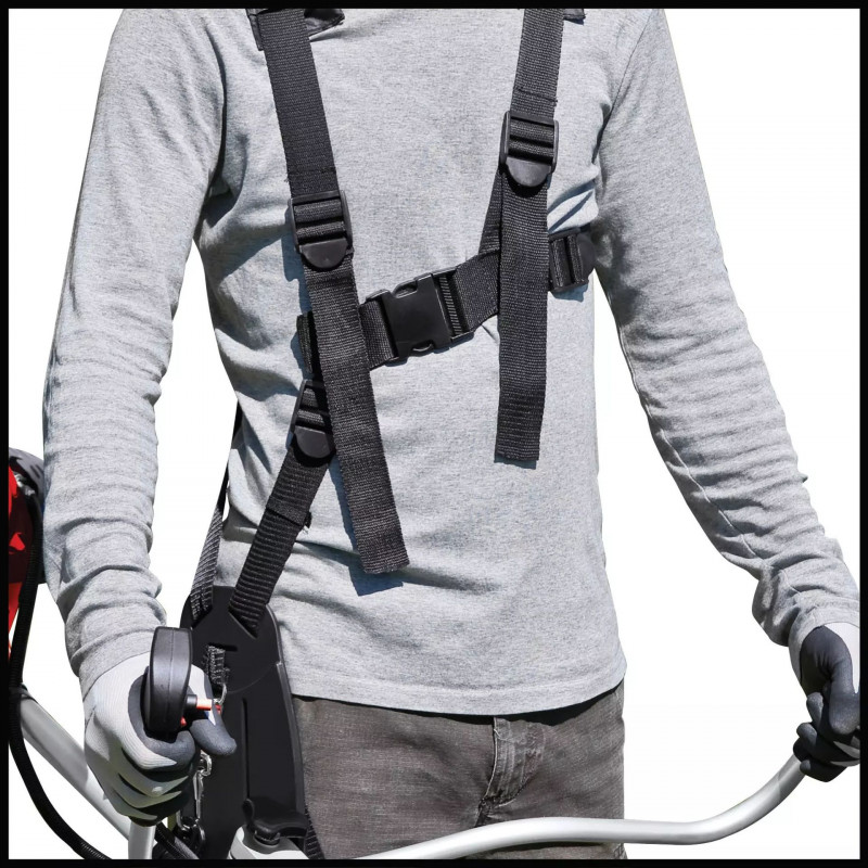 A kényelmes hordheveder csökkenti a terhelést munka közben, az osztott tengely pedig lehetővé teszi a gép gyors szétszerelését, így a bozótvágó könnyen szállítható és kis helyen tárolható.