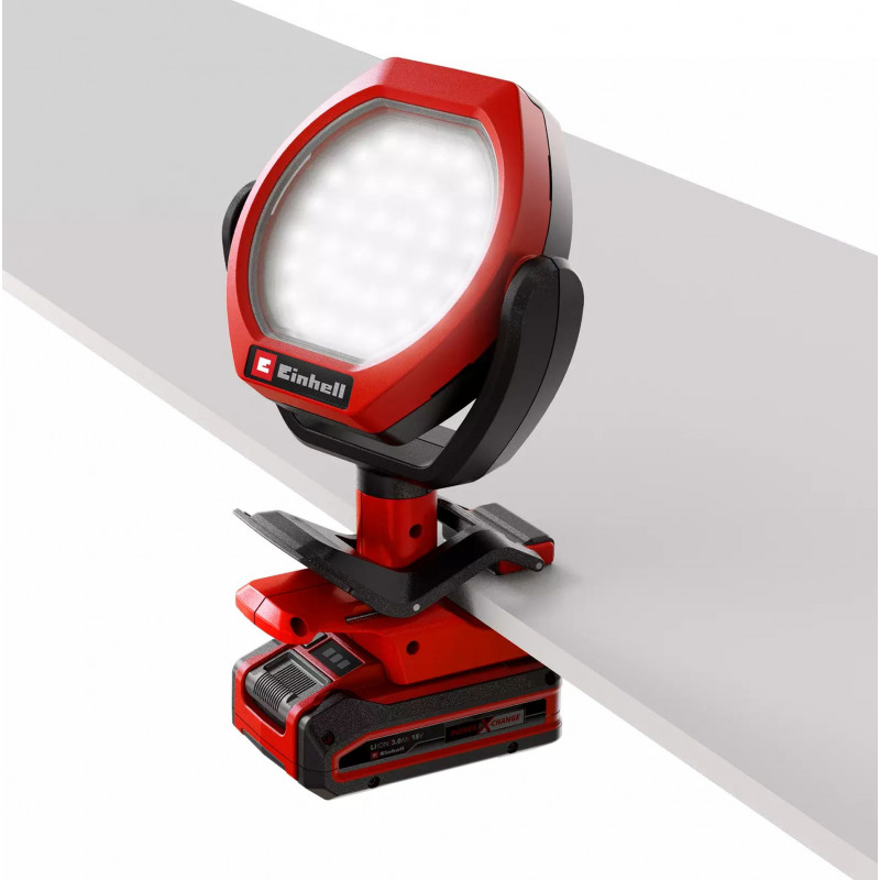 Az Einhell GC-OL 18/1500 Li-Solo akkumulátoros kültéri lámpát 11 cm átmérőjű, dönthető és forgatható, összesen 36 LED-et tartalmazó lámpafejjel szerelték fel. A 7000 K hideg fehér színhőmérsékletű LED-ek akár 1500 lumen fényerőt is képesek leadni. A maximális hatótávolság 4 méter.