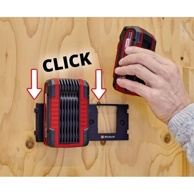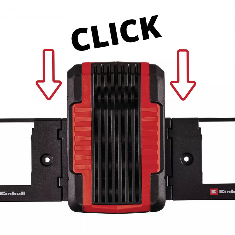 Egyetlen műhelyből sem hiányozhat az eredeti Einhell Power X-Change fali tartó. Helytakarékosan lehet tárolni az akkumulátorokat, és akár fejjel lefelé is felszerelhető, például munkapad alatt. Mindig kéznél lesznek az akkumulátorok. Az akkumulátor tartók utazás közben is hasznosak, mivel lakókocsikba és furgonokba is felszerelhetők. A Snap-In rendszer biztosítja, hogy az akkumulátorok ne essenek ki a tartóból utazás közben.