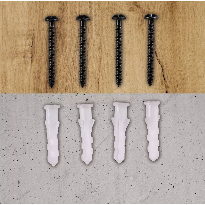- Tartalmaz 4 csavart és 4 dübelt a szereléshez