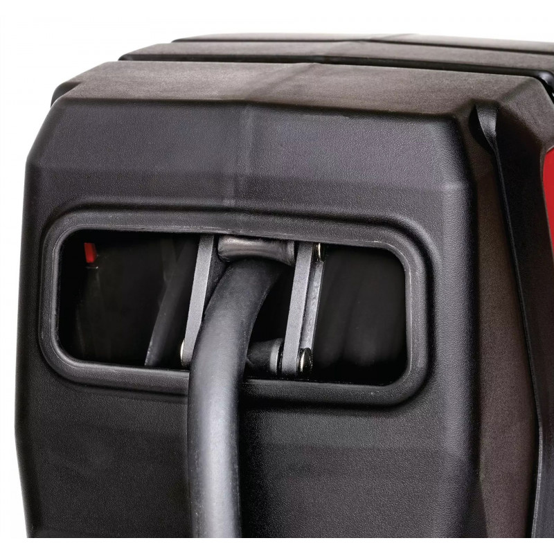 Az Einhell TC-PH 150 sűrítettlevegő-tömlődob mindig bevetésre kész: használja otthon, a műhelyben vagy a garázsban! A tömlőt is gyorsan és biztonságosan, pillanatok alatt el felszerelheti, és nem kell többet a locsolás közben botlás- vagy balesetveszély miatt aggódnia! A készlet tartalmaz egy 15 méteres sűrítettlevegő-tömlőt és egy 1,5 m hosszúságú csatlakozótömlőt (mindkettő 9 mm belső átmérőjű). Maximális üzemi nyomás: 16 bar. Mindkét tömlő PVC/gumikeverékből készült, maximális rugalmasságot és csavarodásmentes kivitelt biztosítva ezáltal. Az automata rögzítőblokknak köszönhetően a tömlő nem feszül meg. A maximális biztonságról az automatikus lassú visszahúzó-mechanizmus gondoskodik. A tömlő rétegekben hajtódik fel a dobra, így nem gabalyodik össze vagy akadhat be. A burkolaton lévő kampóra felakaszthatja a levegőpisztolyt. A rugalmas használat érdekében a fali tartó 170°-ban megdönthető. A fali tartó rögzítéséhez szükséges kiegészítőket megtalálja a gyári csomagolásban.