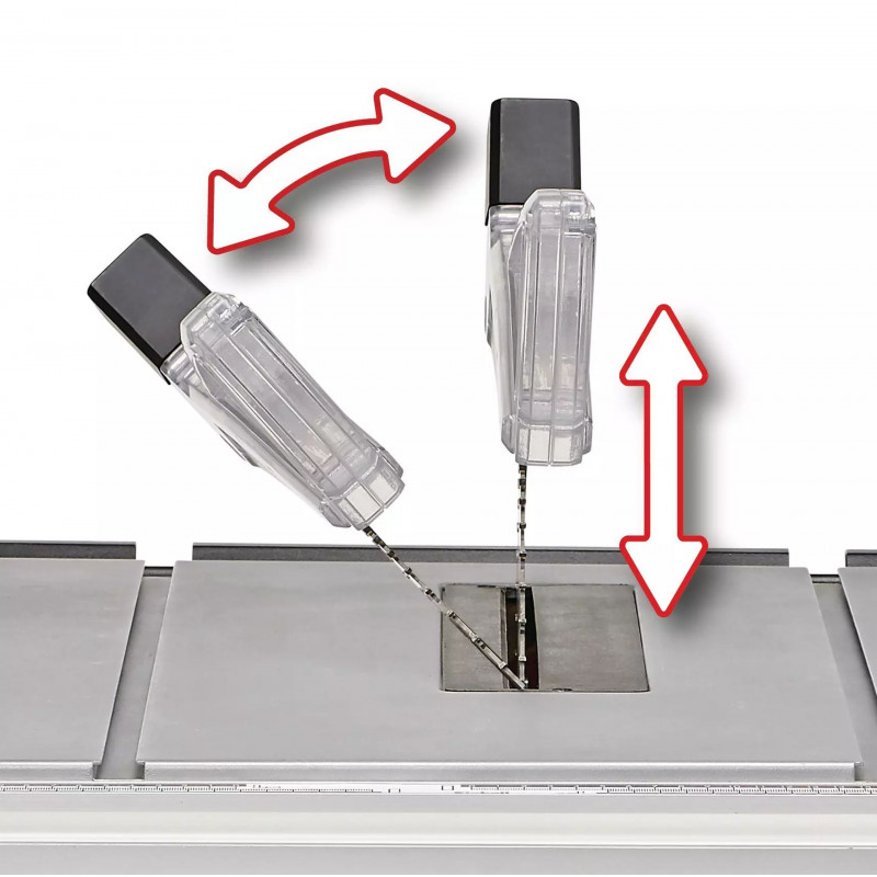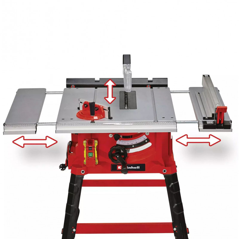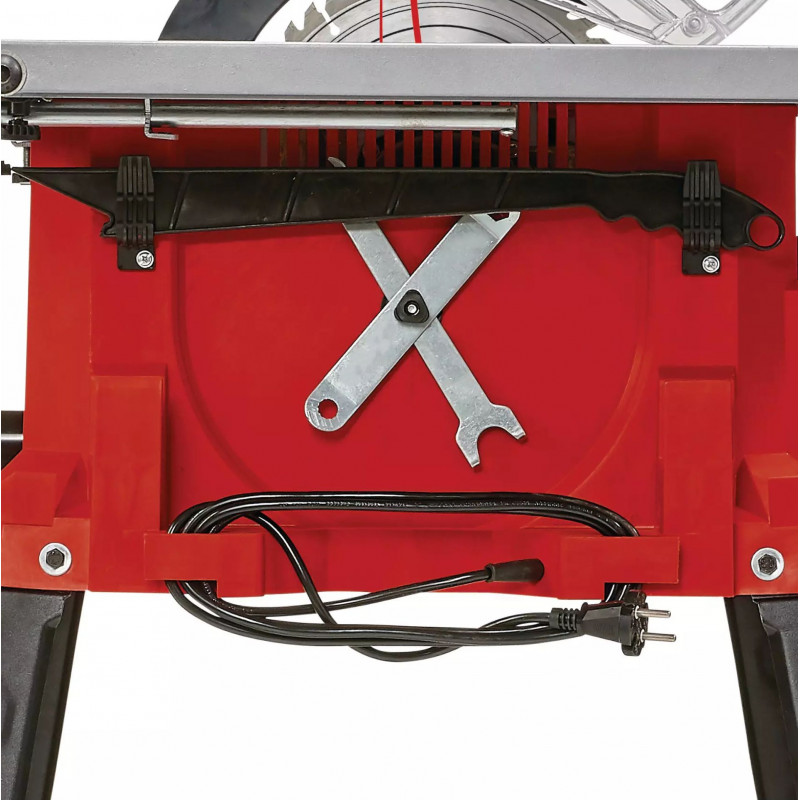 Az Einhell TC-TS 2225 U egy nagy teljesítményű és rendkívül sokoldalú készülék, amely precíz és rugalmas munkavégzést tesz lehetővé. A rendkívül erős párhuzamos ütköző és a kétoldali rögzítés pontos hosszirányú vágást, a szögütköző és a dönthető fűrészlap pedig hajszálpontos gérvágást tesznek lehetővé. A kihúzható oldalsó asztalnak, valamint a hátsó asztalszélesítésnek köszönhetően jelentősen megnövelhető a munkaasztal mérete, és így még a nagyobb munkadarabokat is könnyedén elvághatja a készülékkel. Teljesítményintenzív vágások esetén sem kell aggódnia: a lágyindítás funkció a nagy teljesítményű motort és az elektromos hálózatot egyaránt kíméli. A szerszámokat és tartozékokat (pl. a tolónyelet és a tápkábelt) a készülékházon speciálisan erre a célra kialakított tartókon rögzítheti.