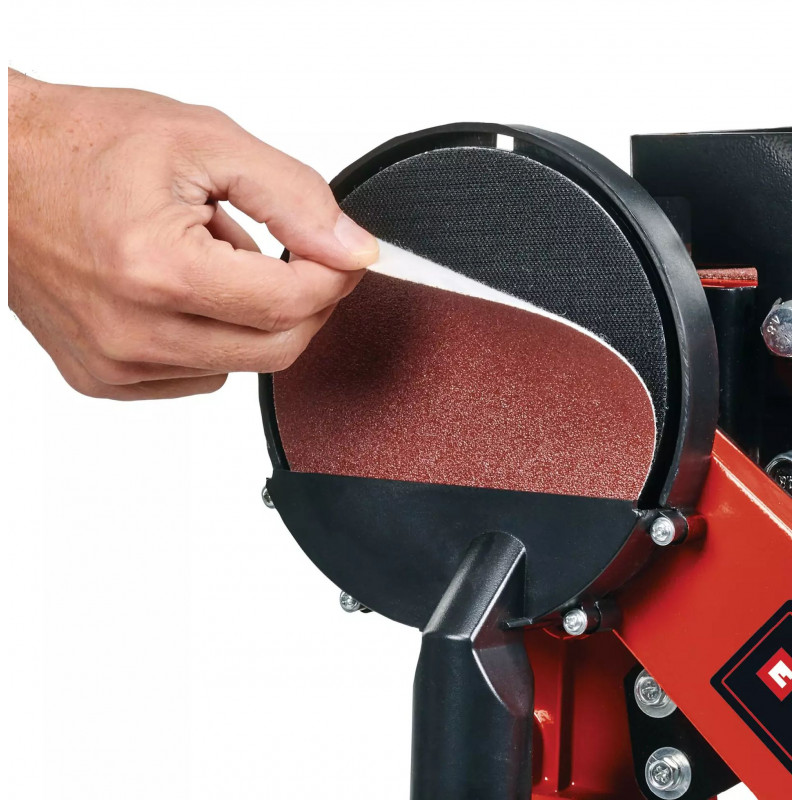 Az Einhell TC-US 380 asztali szalagcsiszoló egy 380 watt teljesítményű készülék, amelyet szalag- és tányércsiszoló funkcióival, illetve ütközővel felszerelt, dönthető szalagcsiszoló-berendezéssel láttak el. Az egyszerű szalagcserét a csiszolószalag centrírozását segítő rögzítőszerkezet biztosítja. A gyors csere érdekében a 150 mm átmérőjű tányért tépőzáras rögzítéssel látták el. A stabil, csavarodásmentes, dönthető és jól látható szögbeosztással ellátott alumíniumasztal mindkét csiszolóegységhez használható, és ezáltal rendkívül sokoldalú felhasználási lehetőséget biztosít. A keresztütköző -60° és +60° között dönthető. A maximális stabilitásról a négy robusztus, rezgéscsökkentett gumiláb, a munkaterület tisztaságáról pedig a porelszívó-adapter gondoskodik. A készüléket csiszolószalaggal és -koronggal együtt vásárolhatja meg.