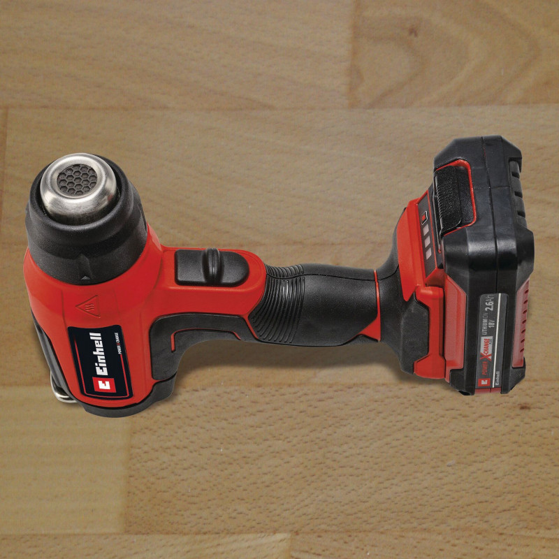 Az Einhell TE-HA 18 Li – Solo akkumulátoros hőlégfúvó a nagy teljesítményű Power X-Change rendszer sokoldalú tagja. A készülék két hőmérséklet-fokozattal rendelkezik, így ideális műanyagok kíméletes formázásához, valamint ragasztók, régi festék- és lakkrétegek eltávolításához. A jól látható LED kijelző egy pillantással megmutatja az aktuálisan beállított hőmérsékleti szintet. A túlmelegedés elleni védelem gondoskodik a biztonságos használatról, míg a mechanikus fúvókakioldó gyors és kényelmes fúvókacserét tesz lehetővé. A stabil talpkialakítás álló használatot is biztosít, a kihajtható fém akasztó pedig megkönnyíti a rugalmas munkavégzést és a tárolást. Az ergonomikus, Softgrip felületű markolat kényelmes és biztos fogást nyújt. A készülék akkumulátor és töltő nélkül kerül szállításra, ezek külön vásárolhatók meg.